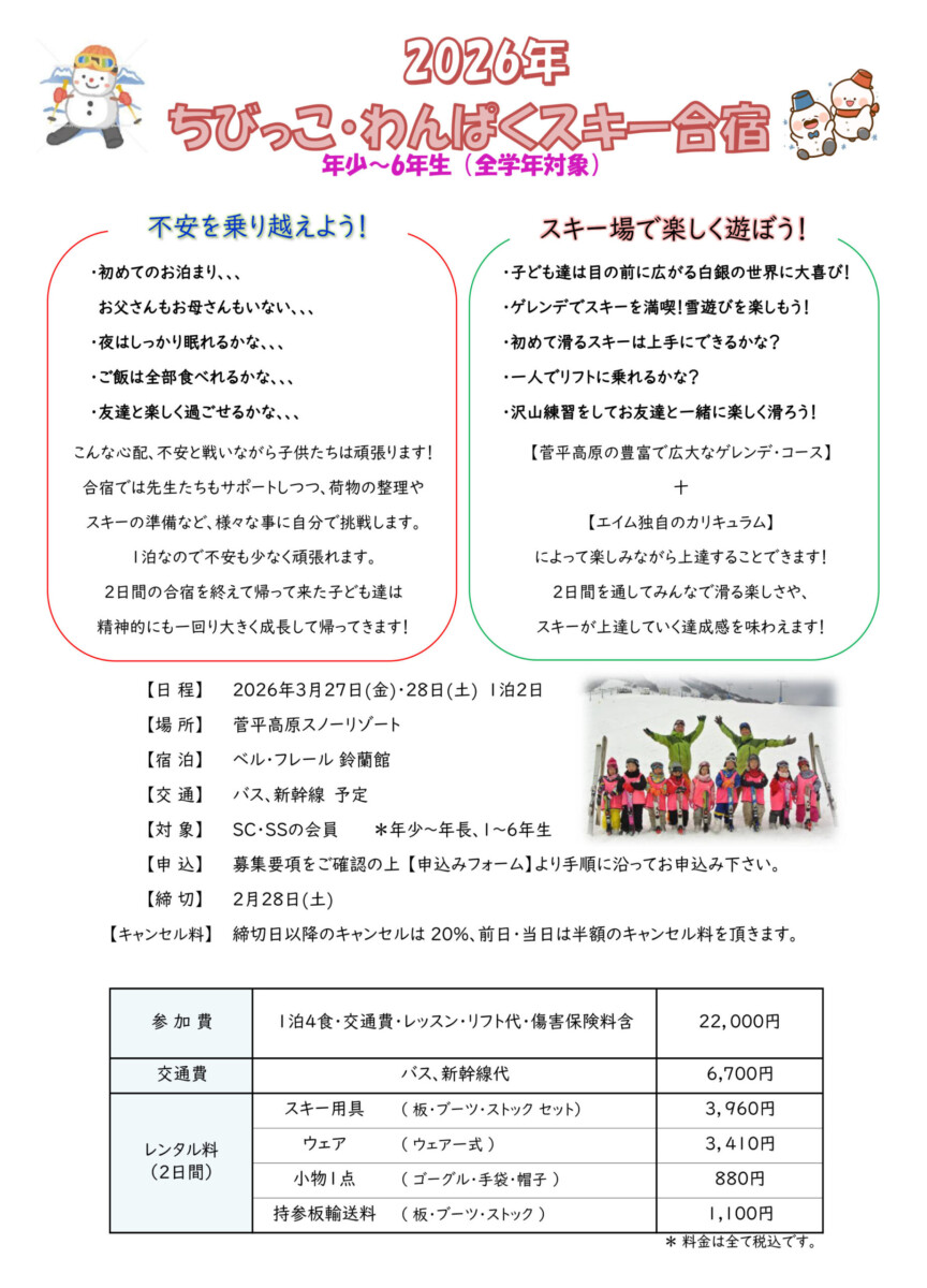 スキー合宿のお知らせ