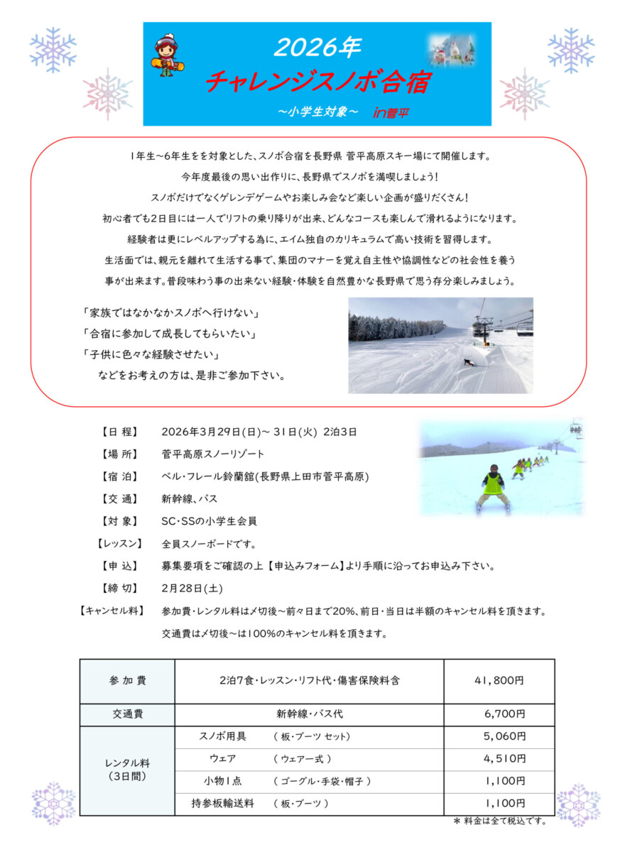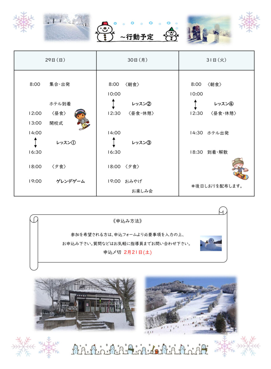 スノボー合宿のお知らせ
